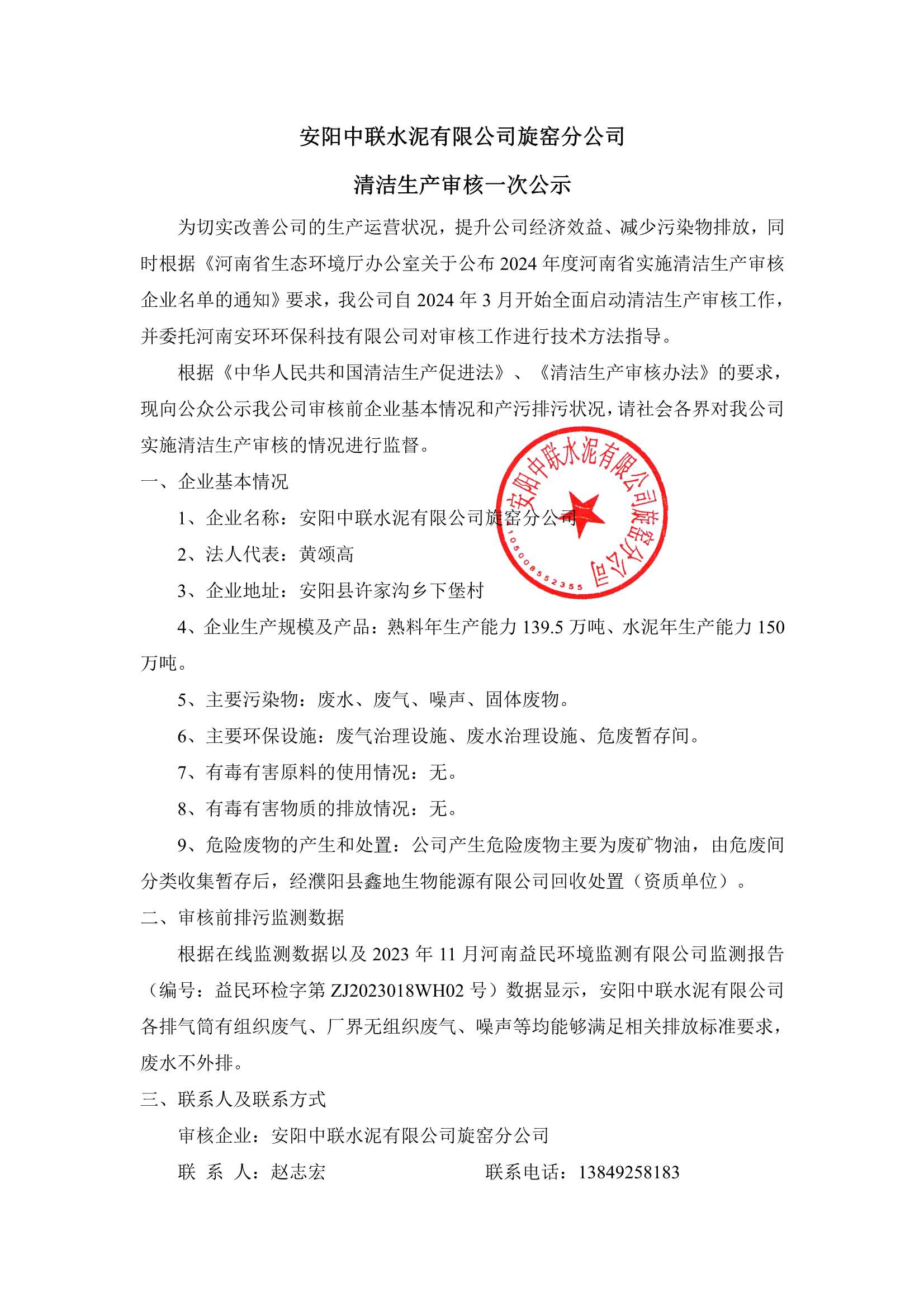 安陽中聯(lián)水泥有限公司公示